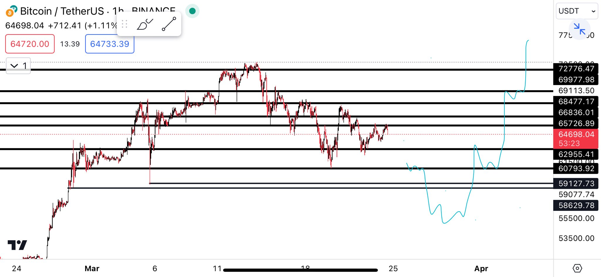 Впрочем, есть и участники криптосообщества, которые видят потенциал для более глубокой коррекции биткоина. Например, трейдер Johnny считает, что BTC может опуститься до $55 тыс. в конце марта. После, по его мнению, криптовалюта начнет штурм ATH.