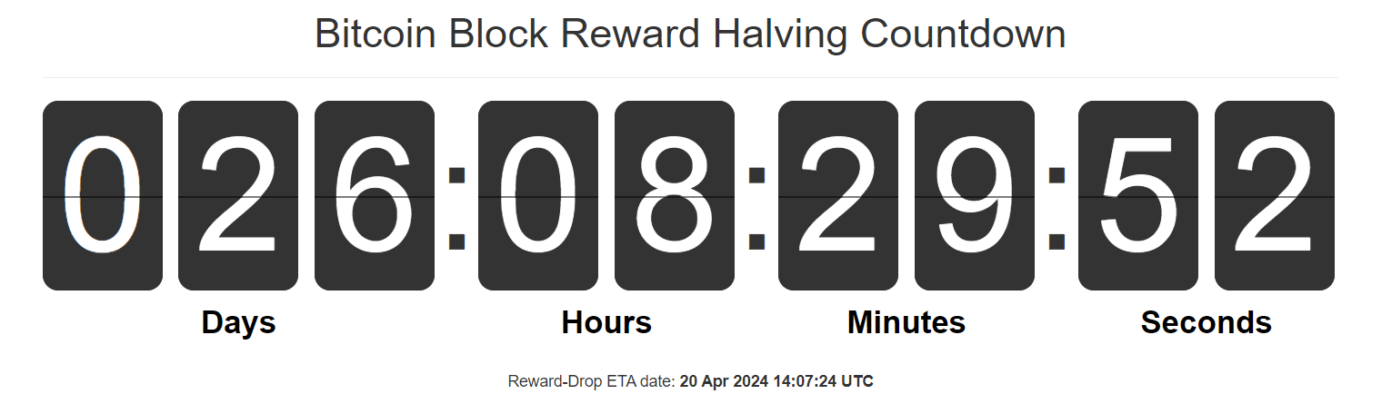 Тем временем до халвинга BTC осталось 26 дней. Событие состоится 20 апреля 2024 года.