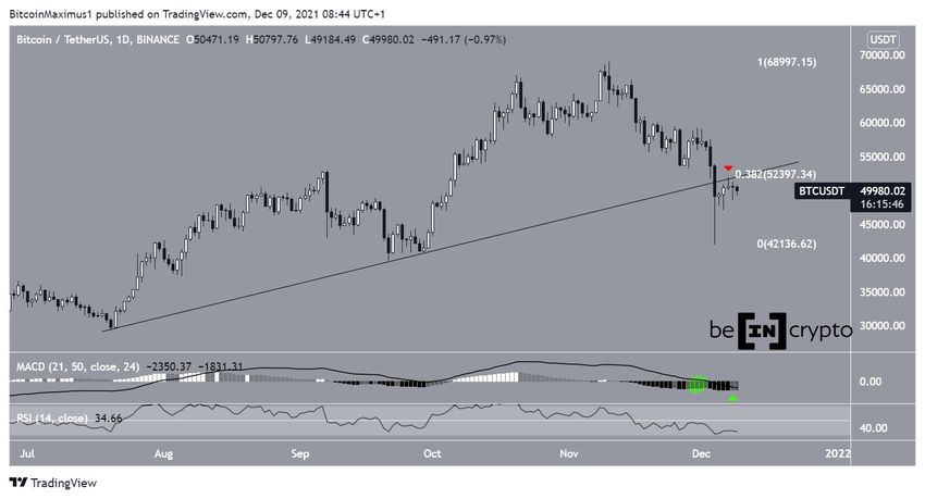 Биткоин отметил 4 декабря локальный минимум на $42 000 и с тех пор пытается вырасти. В итоге курс BTC достиг 7 декабря максимума на $51 936.