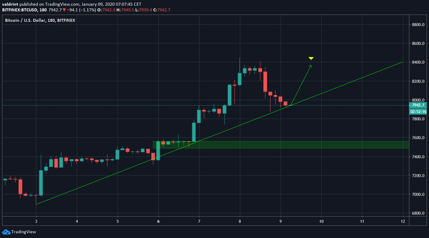 - Возможно, курс BTC следует вдоль линии восходящей поддержки.