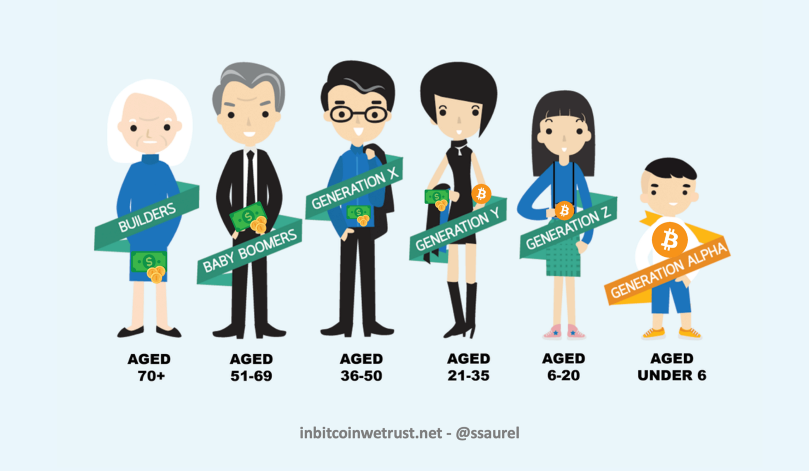 На смену представителям поколения Х уже приходят миллениалы, а также представители поколений Z и альфа, которые вводят в жизнь новые правила. И если сегодня миллениалы еще с некоторым сомнением относятся к биткоину, то представители Альфа будут использовать его в качестве обычного платежного средства. Об этом в своей статье заявил аналитик Сильвен Заурель.