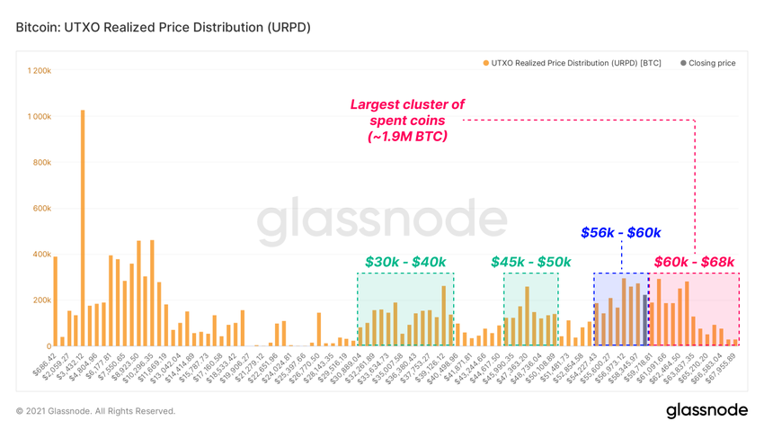 Также эксперты предупредили, что в 2021 году кластерные передвижения биткоина (около 1,9 млн BTC) осуществлялись при курсе в $60 000-$68 000. Если инвесторы, находящиеся в минусах при $57 000, начнут фиксировать свои убытки, то вышеупомянутый диапазон может стать главной преградой для восстановления рынка.