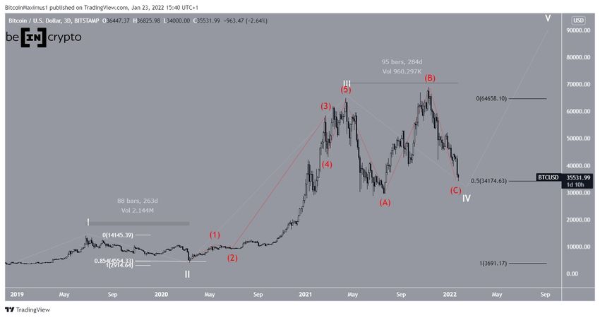 Согласно результатам волнового анализа, биткоин (BTC) уже завершил или завершает коррекцию, начавшуюся в апреле 2021 года. Из трех возможных краткосрочных сценариев два указывают на достижение дна.