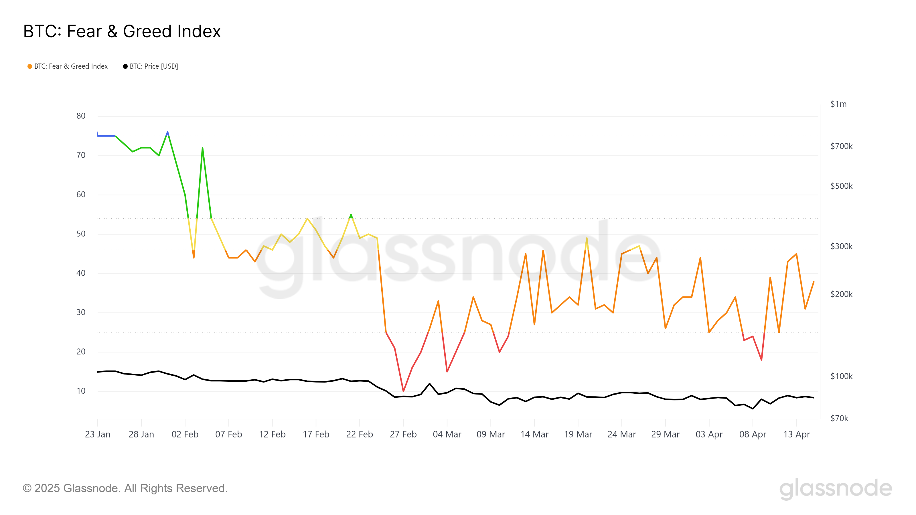Индекс страха и жадности показывает преобладание страха среди держателей BTC. С начала марта этот страх усилился, так как рынок не реагирует на положительные сигналы. Пока цена биткоина остается на месте и не может восстановить бычий импульс, уверенность инвесторов продолжает снижаться.