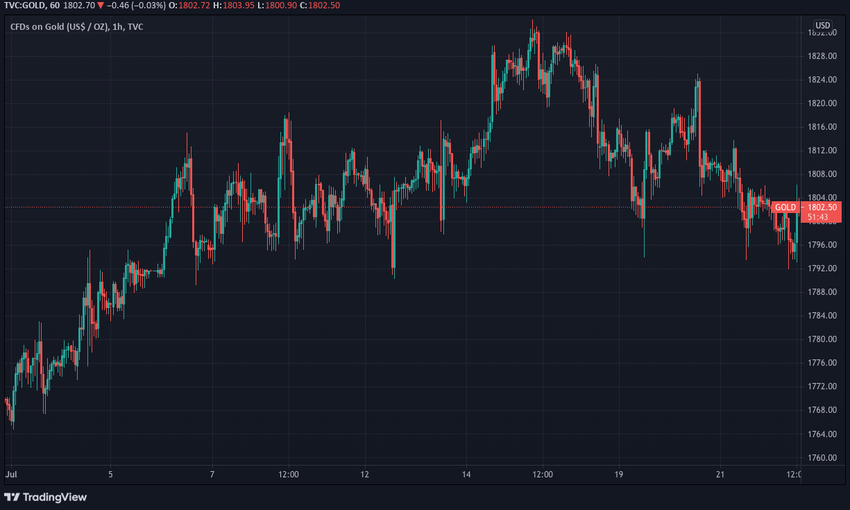 В целом июль оказался удачным месяцем для золота. Драгметалл начал этот месяц в районе $1 765 и к 6 июля укрепился до $1 812. После этого торги перешли на следующей неделе в канал $1 790 – $1 820, при этом цена демонстрировала плавный бычий уклон. 14,15 и 16 июля рынок устроил забег к $1 830, после чего откатился к $1 800 19 июля. На следующий день цена подпрыгнула к $1 825, но снова откатилась в район $1 800.