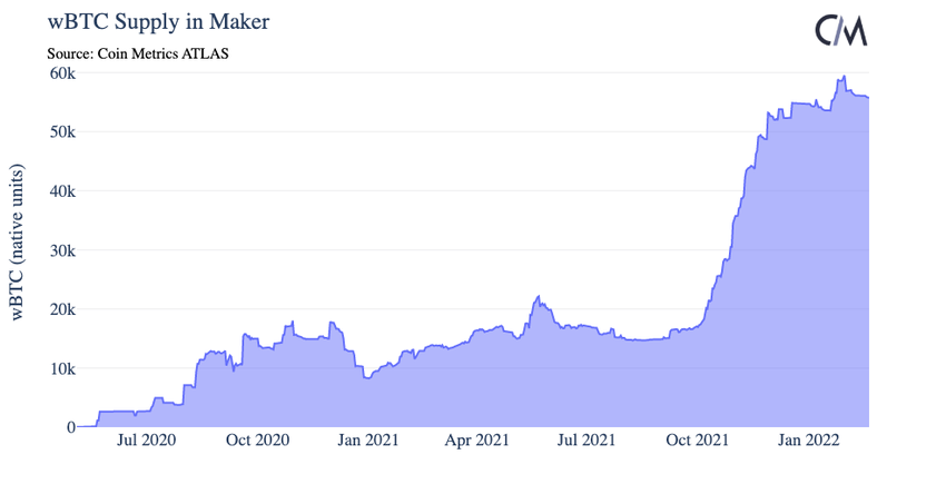 Более половины (66%) токенизированных биткоинов wrapped bitcoin (wBTC) осели на кошельках смарт-контрактов в сети Ethereum. Об этом у себя в отчете сообщили аналитики компании Coin Metrics. Крупнейшим держателем wBTC является система Maker, протокол алгоритмического кредитования, лежащий в основе стейблкоина DAI.