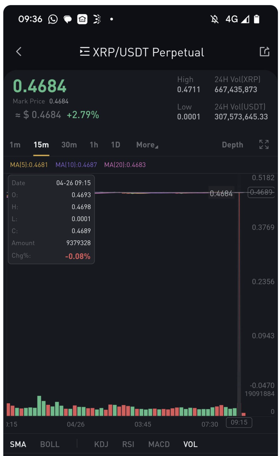 В среду, 26 апреля, нативный токен блокчейн-стартапа Ripple – XRP – на короткое время упал до $0. Это произошло на сингапурской бирже Bitrue в паре XRP/USDT. На других платформах в этот период курс XRP не опускался ниже $0,46.