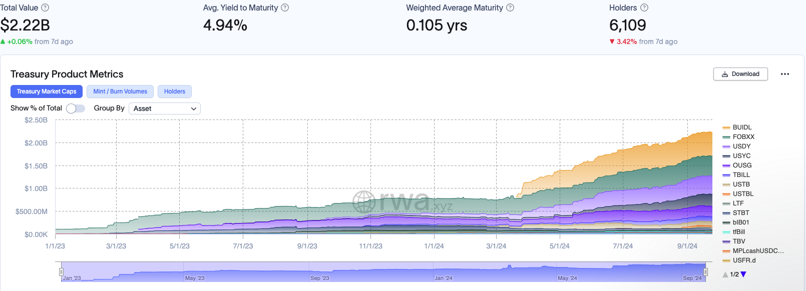 Рынок токенизированных государственных ценных бумаг продолжает расширяться. В настоящий момент капитализация сектора превышает $2,22 млрд.