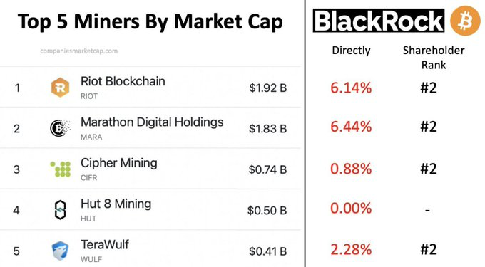 29 августа независимый исследователь Коллин Браун сообщил, что BlackRock оказался в числе крупнейших акционеров публичных компаний, занимающихся майнингом биткоина. Управляющий активами приобрел большое количество ценных бумаг Riot Blockchain, Marathon, CipherMining и TerraWulf.