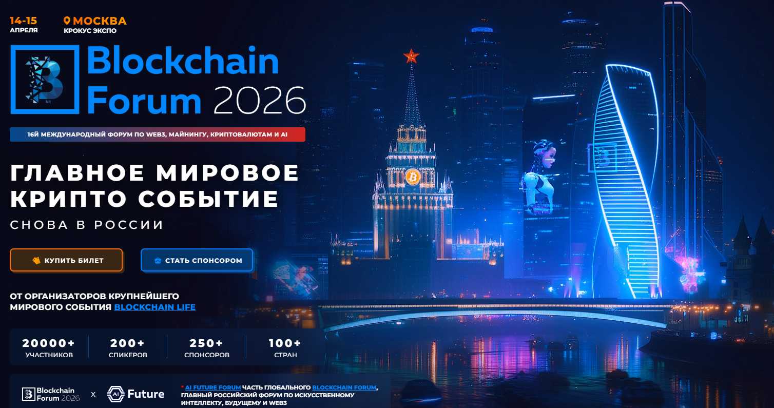 14–15 апреля 2026 года в Москве состоится Blockchain Forum 2026 — крупнейшее крипто- и Web3-событие в СНГ, ежегодно объединяющее лидеров цифровой экономики. За последние годы форум стал ключевой площадкой региона, где встречаются представители криптоиндустрии, банковского сектора, инвестиционных фондов и технологических компаний.