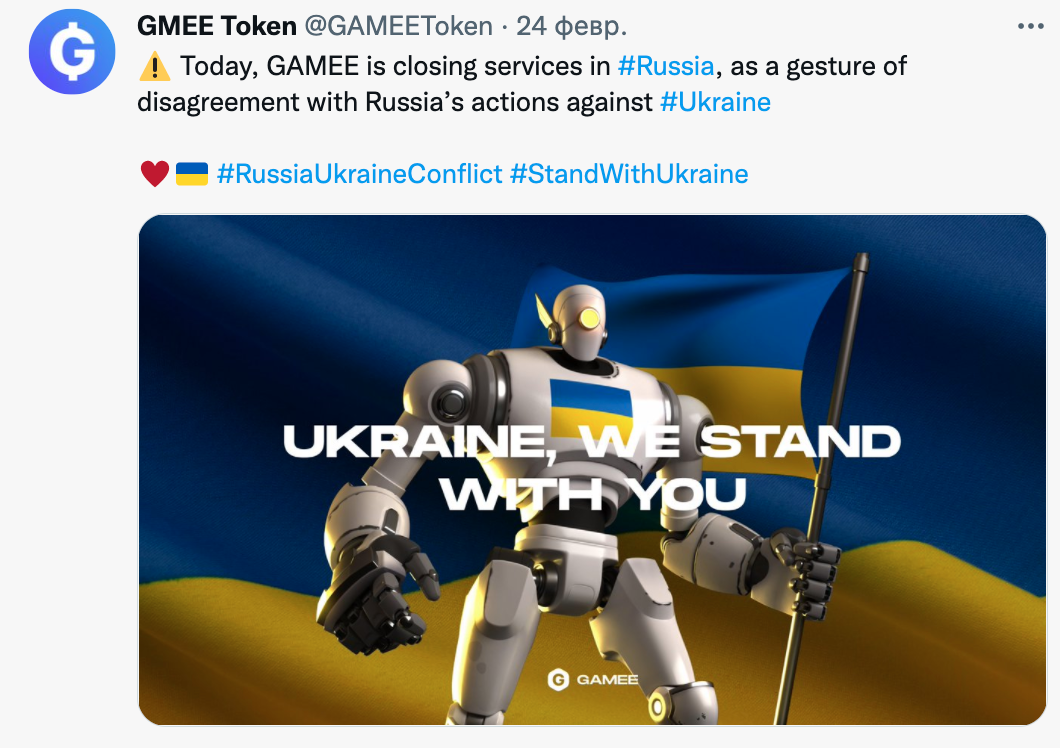 Gamee объявила в твиттере 24 февраля, что закрывает свои услуги в России, а Lympo сообщила, что прекратит публиковать NFT российских спортсменов и прекратит переговоры с национальными спортсменами о присоединении к экосистеме Lympo NFT.