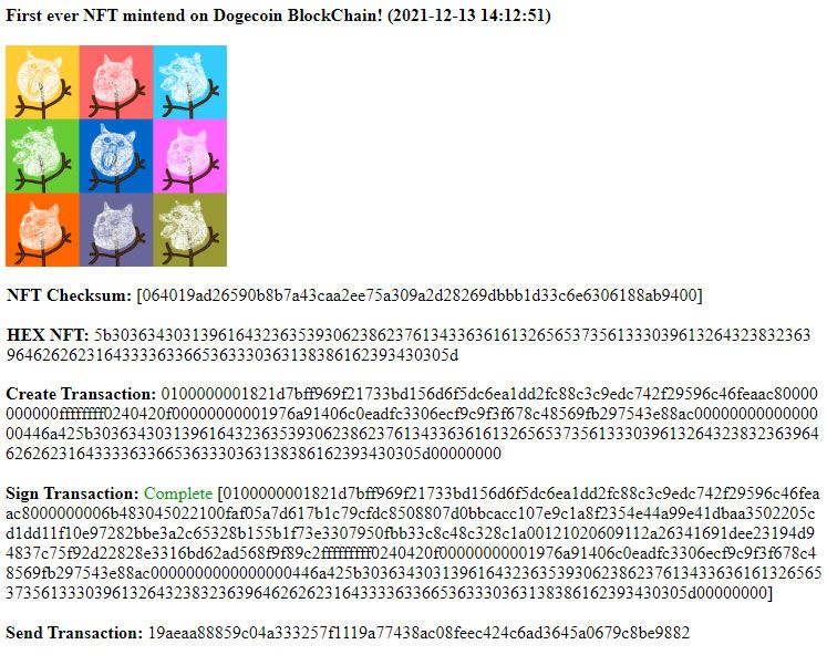 Блокчейн-сеть Dogecoin впервые обзавелась собственным невзаимозаменяемым токеном (NFT). Об этом у себя на странице в твиттере написал DOGE-разработчик под псевдонимом @inevitable360. Согласно деталям транзакции, в сети выпустили коллаж с логотипом альткоина.