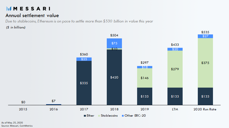 С другой стороны, подобные тенденции, безусловно, повышают ценность и значимость сети в целом, а также демонстрируют различные варианты ее использования. Это однозначно является бычьим фактором для Ethereum. По оценкам Уоткинса, именно благодаря стейблкоинам показатель общей стоимости расчетов в сети может превысить в этом году $530 млрд.