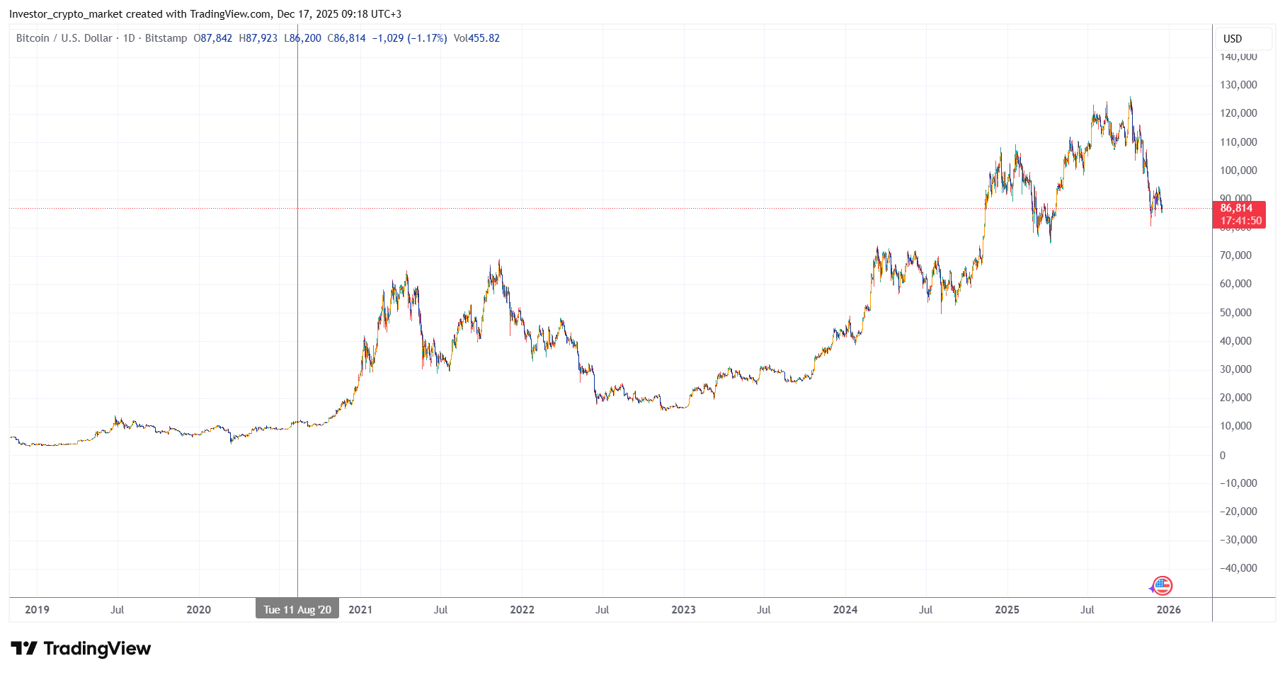 В 2020 году, когда основатель Strategy, крупнейшего инвестора BTC среди публичных компаний, Майкл Сэйлор впервые вложился в биткоин, цена криптовалюты находилась в районе $10 000. Именно от этого уровня началось институциональное ралли. Макглоун указывает на эту отметку как на важную ценовую зону и допускает, что рынок может со временем вернуться к ней в рамках долгосрочного цикла.