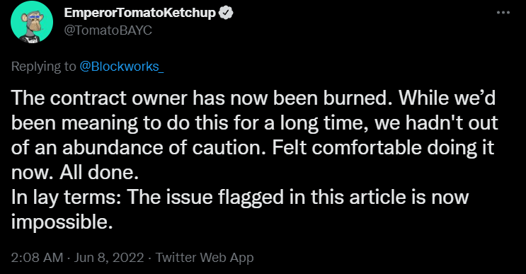SponsoredПо его словам, студия не торопилась убирать код из-за «чрезмерной осторожности». Разработчики BAYC также предоставили транзакцию со сжиганием кода.