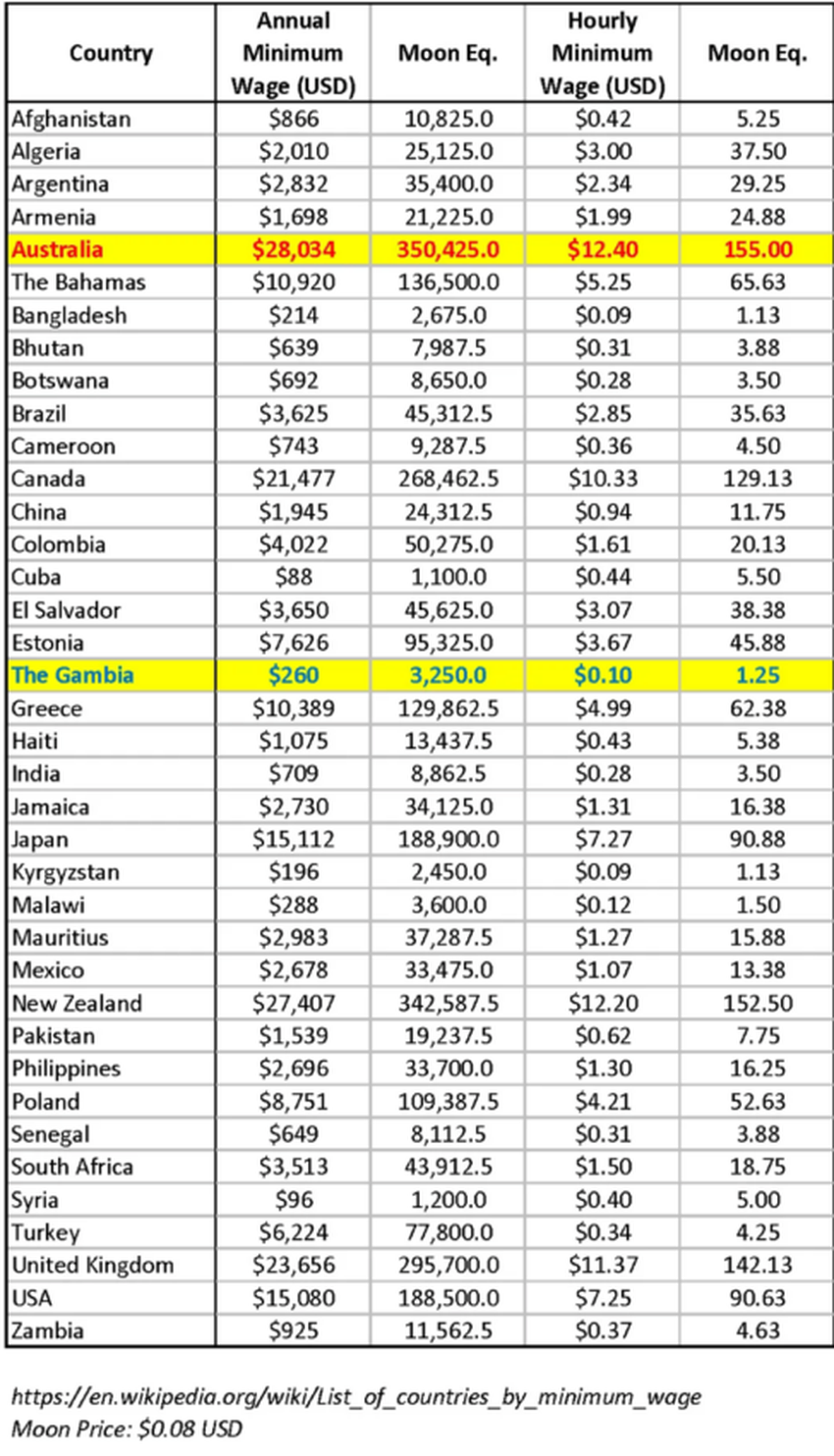 Еще один сторонник этой идеи даже составил таблицу, сравнивающую минимальный размер оплаты труда в различных странах и эквивалентное ему количество токенов MOON: