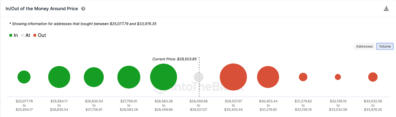 Учитывая вышеперечисленные факторы, быки могут воспользоваться предстоящим выходом данных по ИПЦ, чтобы подтолкнуть биткоин к отметке $32 000. Однако сначала им придется преодолеть сопротивление из 2,2 млн адресов, которые приобрели 976 780 BTC по максимальной цене $30 403.