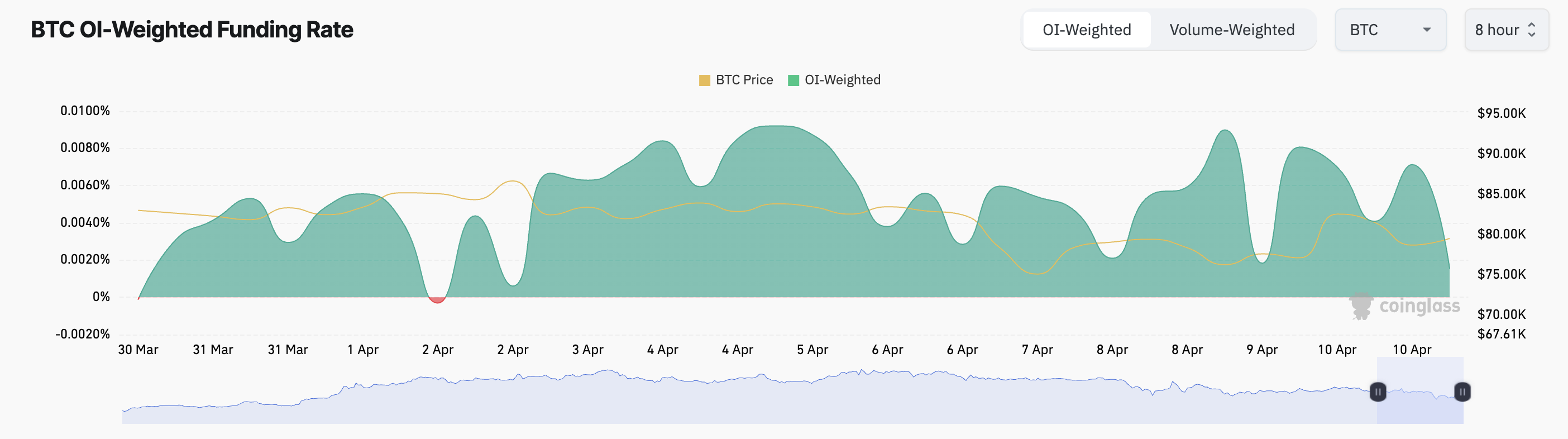 На момент публикации ставка финансирования BTC составляет 0,0015%. Положительные значения указывают на то, что «быки» платят «медведям», что говорит о преобладании оптимистичных настроений.