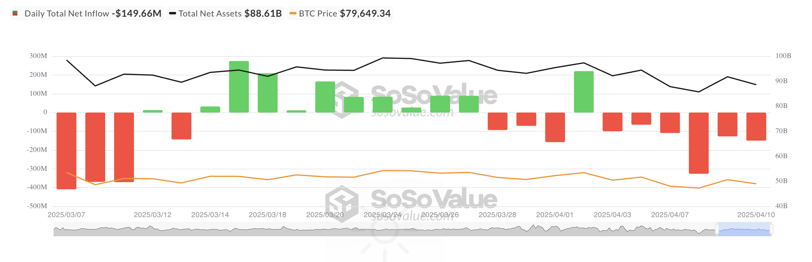 С другой стороны, ETF Fidelity FBTC показал наибольший отток в среду — $74,67 млн. На момент публикации его совокупный исторический приток составляет $11,40 млрд.