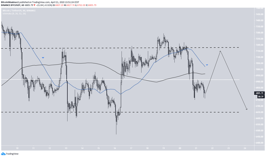 Биткоин вернулся в диапазон $6650-$7150, причем сначала цена попыталась обосноваться над срединной линией этого диапазона, но ей это не удалось.