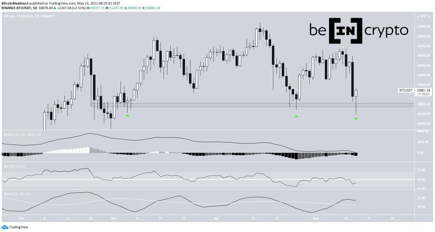 Биткоин (BTC) ощутимо снизился, но оттолкнулся от области поддержки $48 000.