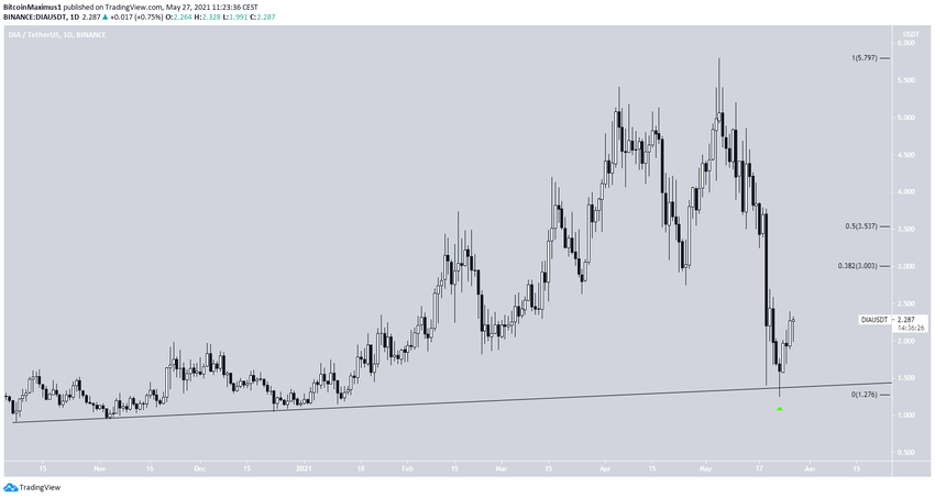 DIA (DIA) потенциально движется вдоль линии восходящей поддержки.