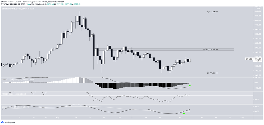 Биткоин (BTC) сформировал свечу медвежьего поглощения и достиг минимума на $33 125. Ethereum (ETH) растет с 22 июня и достиг области сопротивления $2 725. Ripple (XRP) совершил бычий пробой линии нисходящего сопротивления, но пока не запустил рост. Enjin Coin (ENJ) прорвал линию нисходящего сопротивления. Monero (XMR) отскочил от горизонтальной поддержки $195, но не смог начать рост.