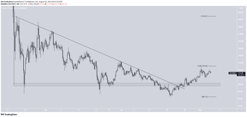 Курс коина Zcash (ZEC) с 20 мая снижался вдоль линии нисходящего сопротивления. 20 июля рынок сформировал минимум на $83.02, прорвавшись под область горизонтального сопротивления $100.