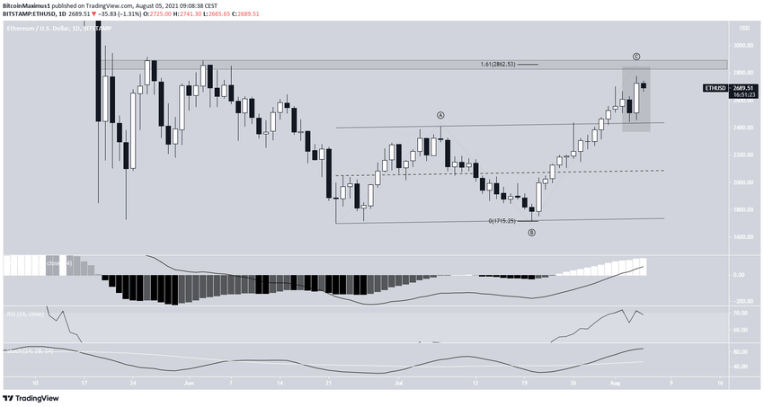 Sponsored SponsoredКроме того, курс ETH приближается к сильному уровню сопротивления $2 860. Во-первых, это область горизонтального сопротивления. Во-вторых, если мы имеем дело с коррекционной структурой A-B-C, то максимум на $2 860 даст нам соотношение волн A:C как 1:1.61. Соответственно, этот уровень представляет также сопротивление Фибоначчи.