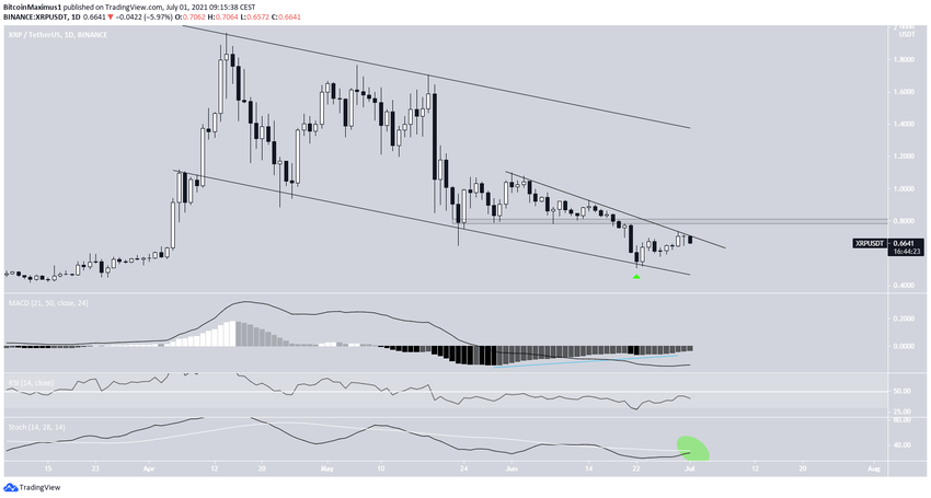 Как и в случае с ETH, графики подают некоторые бычьи сигналы, но их недостаточно для подтверждения бычьего разворота. Бычье пересечение осциллятора стохастик (зеленый значок) станет веским аргументом в пользу бычьего разворота тренда.