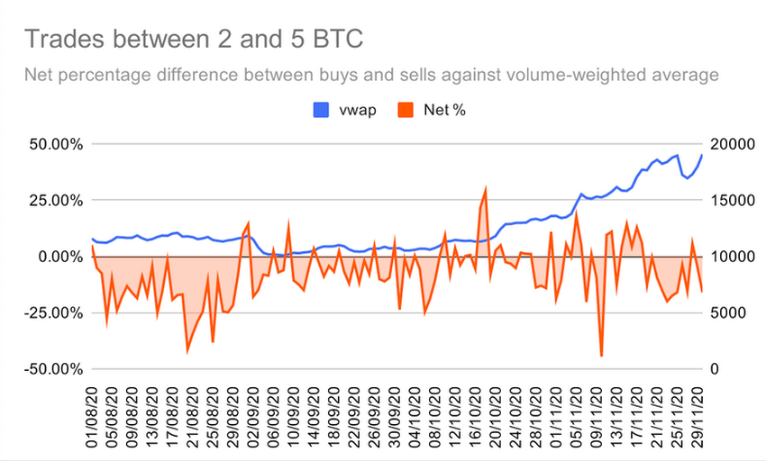 Эксперты команды OKEx проанализировали торговые паттерны пары BTC/USDT в период с августа по ноябрь 2020 года и обнаружили, что розничные трейдеры проигрывали китам.