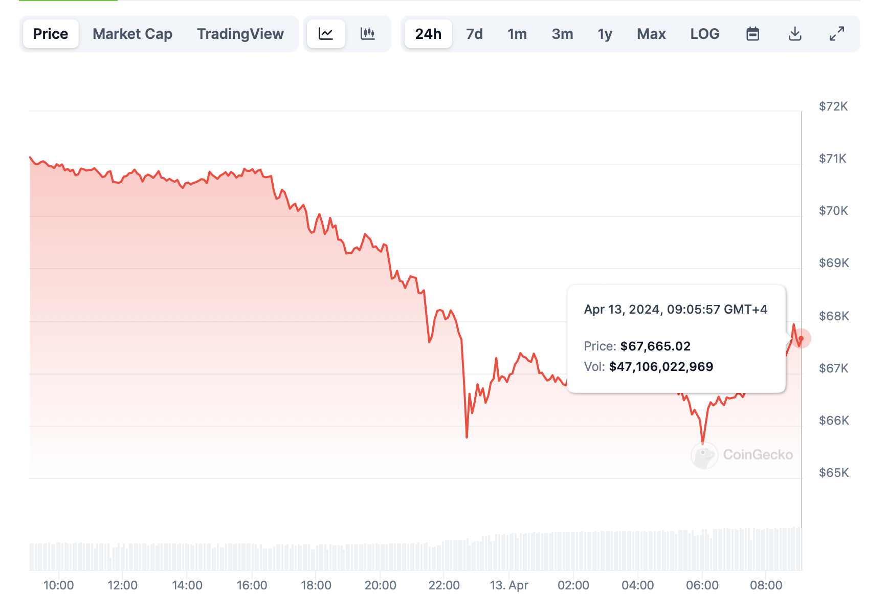 На момент написания цена BTC немного восстановилась — актив торгуется в районе $68 000.