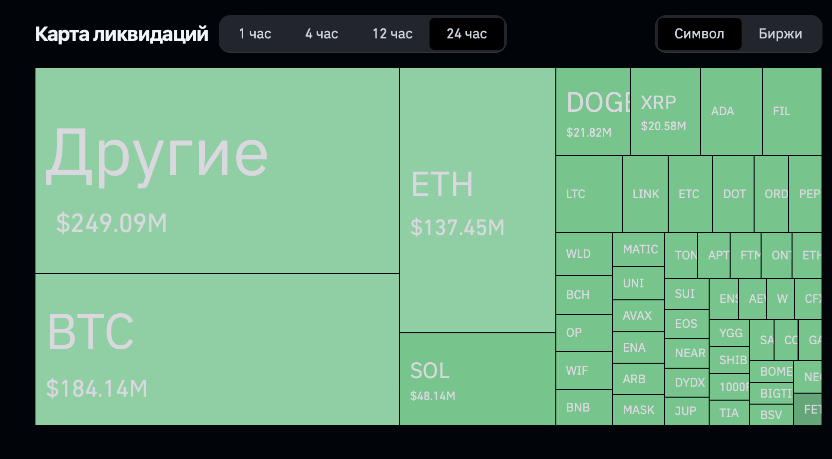 Среди лидеров по ликвидациям среди альткоинов также оказались SOL, DOGE и другие известные монеты.
