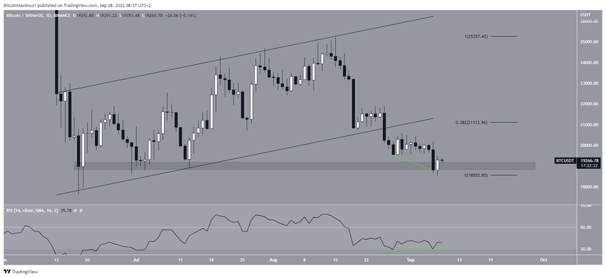 После медвежьего прорыва рынок продолжил снижение и 7 сентября достиг минимума на $18 510. Он был сформирован чуть ниже области поддержки $19 000 (область минимумов июня). Впрочем, вскоре цена совершила отскок и восстановилась над этой областью.