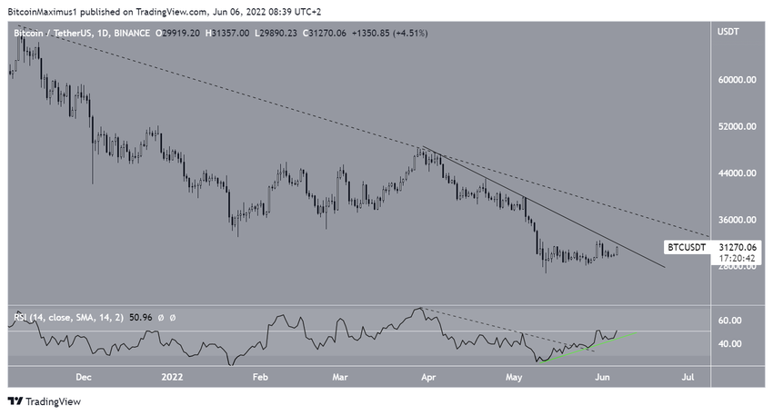 Дневной график дает основания предполагать, что текущий отскок BTC может продолжиться, что позволит цене дойти до упомянутой выше области сопротивления $35 000.