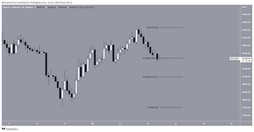 Sponsored SponsoredНа более коротком 2-часовом графике можно увидеть, что BTC торгуется внутри области 0.382-0.618 коррекции Фибо. Эти уровни формируют поддержку между $19 200 и $20 150.