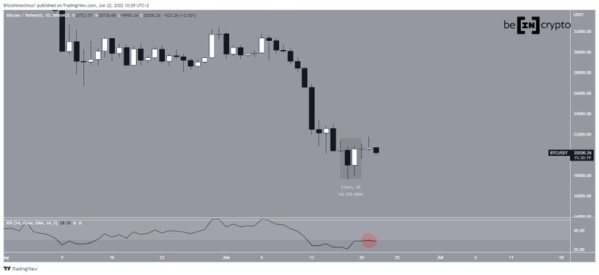 18 июня курс BTC сформировал минимум на $17 622 и с тех пор укреплялся. В итоге на графике появилась свеча бычьего поглощения (выделено). Это бычий паттерн, который полностью нейтрализует все снижение предыдущего дня.
