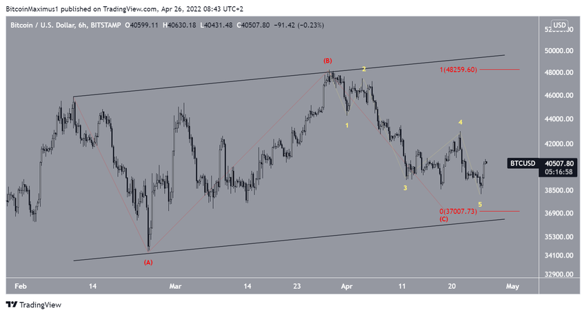 Результаты волнового анализа предполагают, что BTC с 10 февраля снижается в рамках коррекционной структуры A-B-C (красный цвет). Результаты подволнового анализа представлены на графике желтым цветом.