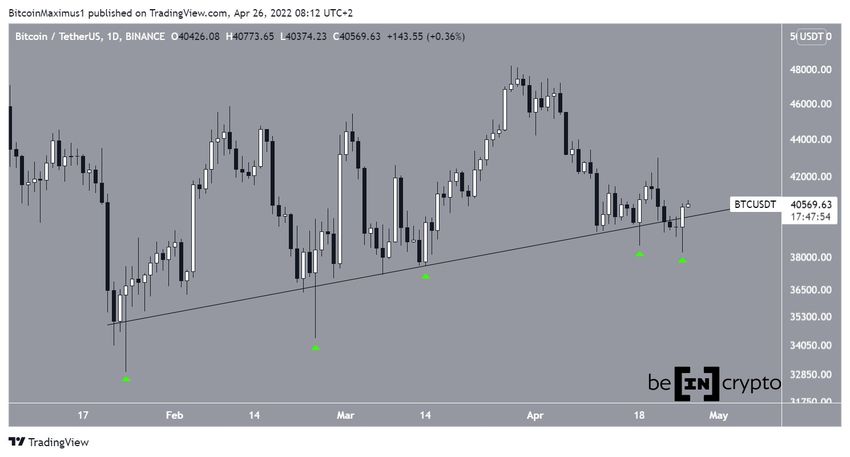 Биткоин (BTC) с 22 января растет вдоль линии восходящей поддержки. Цена уже как минимум семь раз проверяла эту линию на прочность.