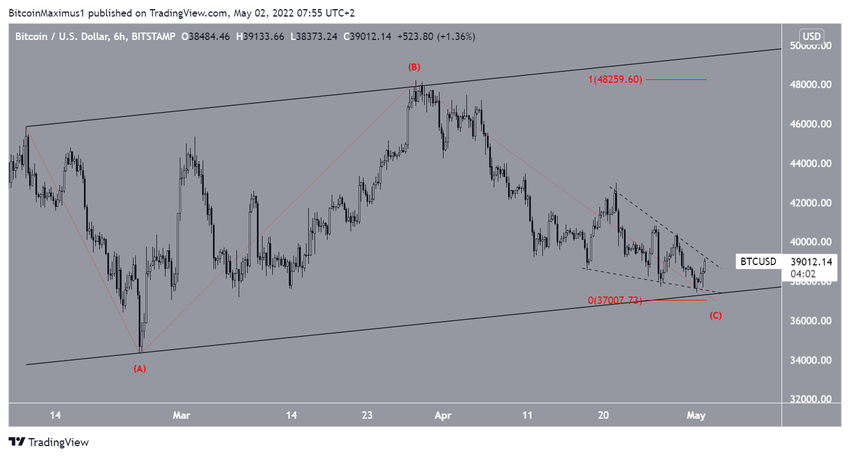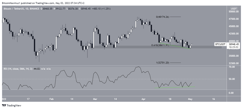 На дневном графике коин снижается с 26 марта. В итоге 1 мая цена достигла минимума на $38 376.