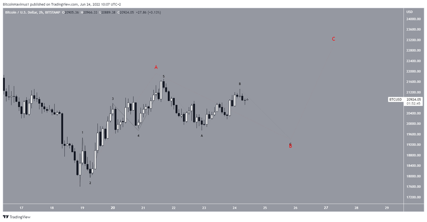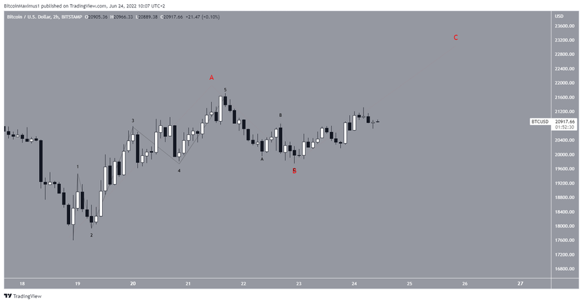 После завершения коррекции имеет смысл ожидать нового бычьего хода в направлении $23 250. Форма, которую приобретет этот рост, покажет нам, с чем мы имеем дело – с новым бычьим импульсом или просто с восходящей коррекцией (красный цвет).