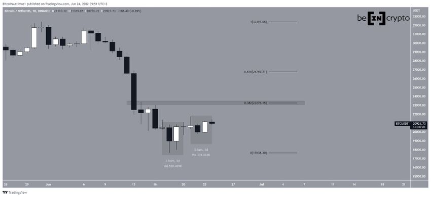 Биткоин (BTC) сформировал третью с 18 июня бычью свечу и теперь держит курс к области сопротивления $23 275