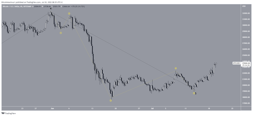 Согласно более долгосрочному анализу, BTC, вероятно, завершил коррекционную структуру A-B-C от исторического максимума. Это также дает надежды на последующий рост цены.