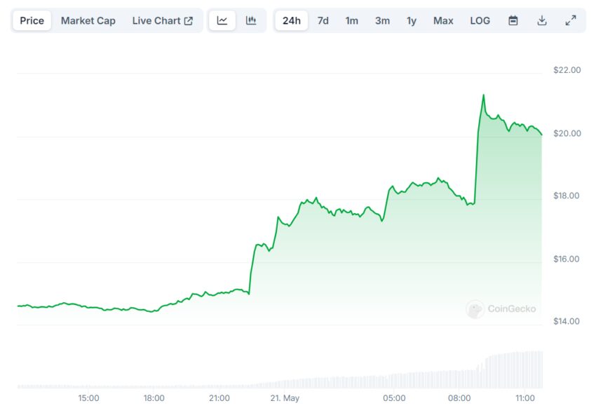 На слова сооснователя Ethereum токен ENS отреагировал мгновенным ростом. По данным CoinGecko, на момент написания материала актив торгуется по $20,05, подорожав за последние сутки на 37%. Максимальной отметкой за прошедшие 24 часа была $21,33, а минимальной — $14,41.