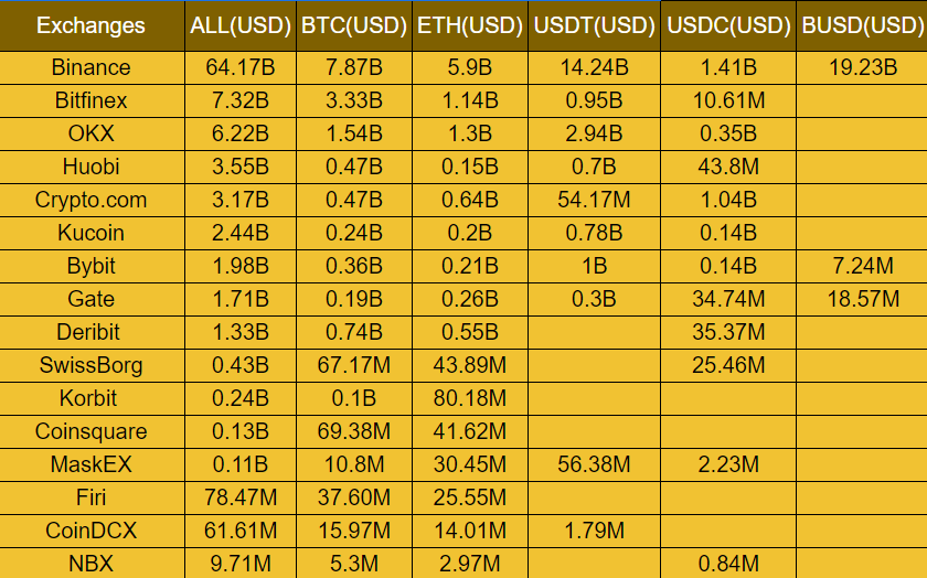 Наиболее обширная диверсификация резервов у Binance. Всего биржа хранит более $64 млрд в BTC, ETH, tether (USDT), USD coin (USDC) и BUSD. При этом меньше всего ($1,4 млрд) Binance держит в стейблкоине USDC, который соучредила американская криптобиржа Coinbase в 2018 году.