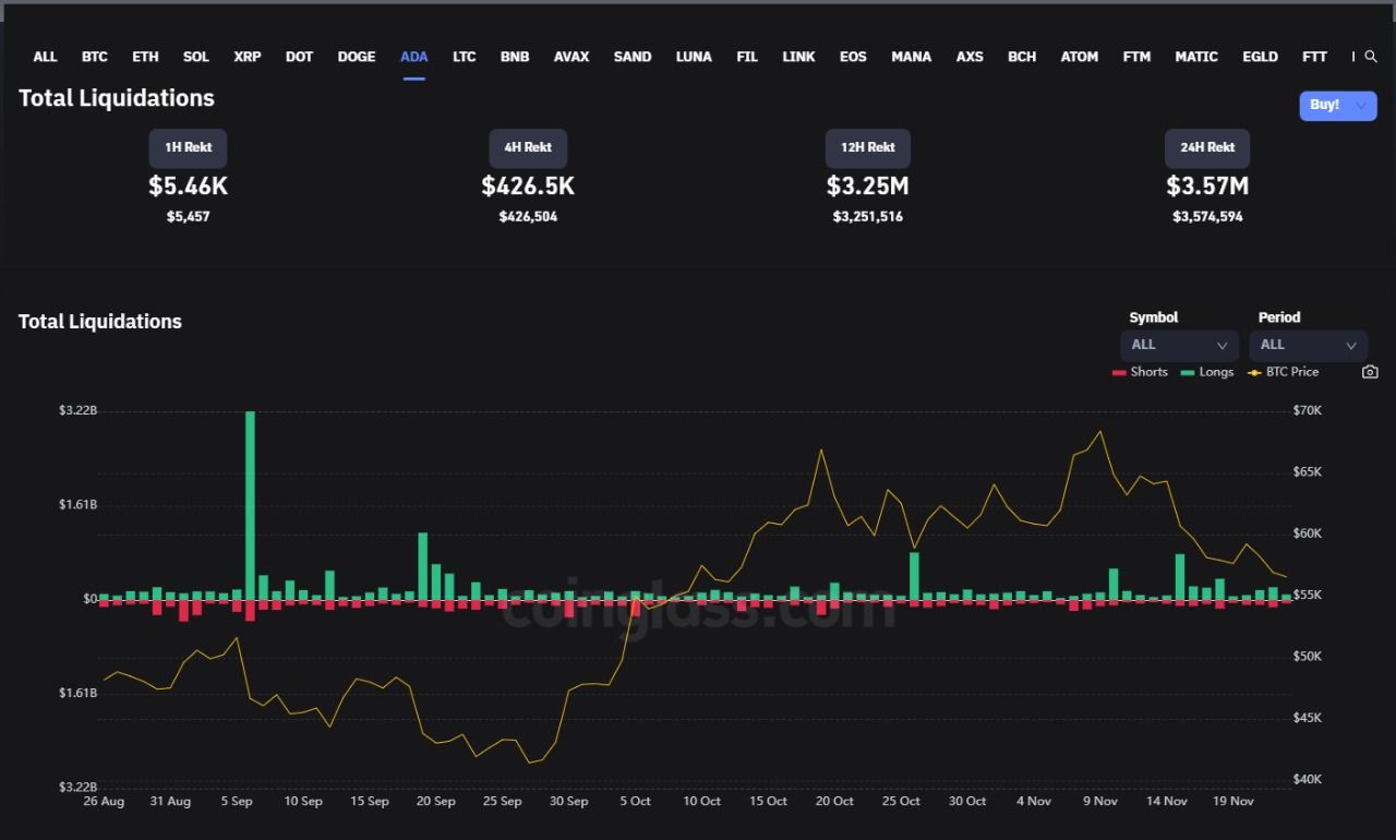 SponsoredСейчас Cardano занимает шестое место в рейтинге криптовалют с капитализацией $54 млрд. Среднесуточный объем торгов приближается к $2 млрд. Объем ликвидаций по ADA за минувшие сутки превысил $3,5 млн с преобладанием длинных позиций.