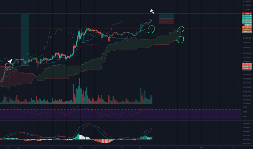 Для того чтобы вышеупомянутый рост на 10% состоялся, альткоин должен изначально отступить к линии поддержки фигуры клин и только после этого вернуться к уровню сопротивления. При этом в целом техническая картина показывает, что коин уже практически исчерпал свой бычий потенциал и близок к формированию вершины.