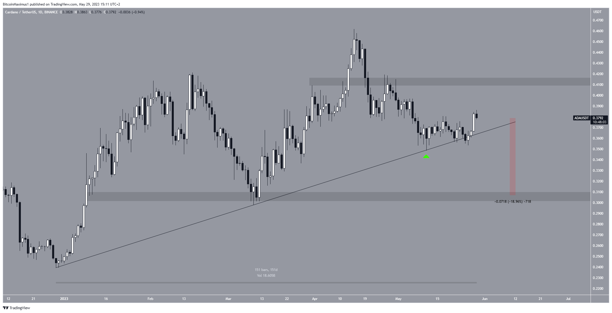 Закрытие выше области сопротивления $0,41 аннулирует медвежий прогноз цены Cardano и может стать катализатором резкого роста в направлении $0,50.