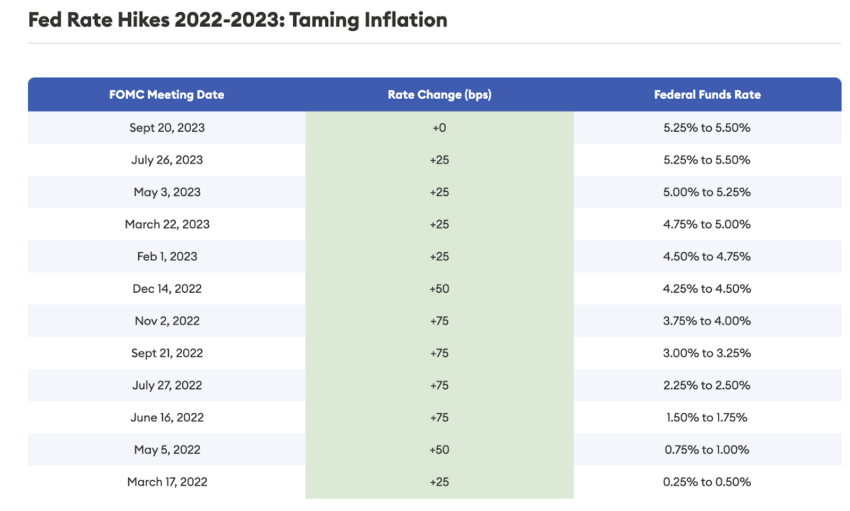 После глобальной пандемии, геополитической напряженности и кризиса цепочек поставок экономика США погрузилась в «техническую рецессию». В качестве беспрецедентной реакции на рост инфляции ФРС постепенно повысила ставку по кредитам на 525 базисных пунктов в течение 16 месяцев, начиная с марта 2022 года.