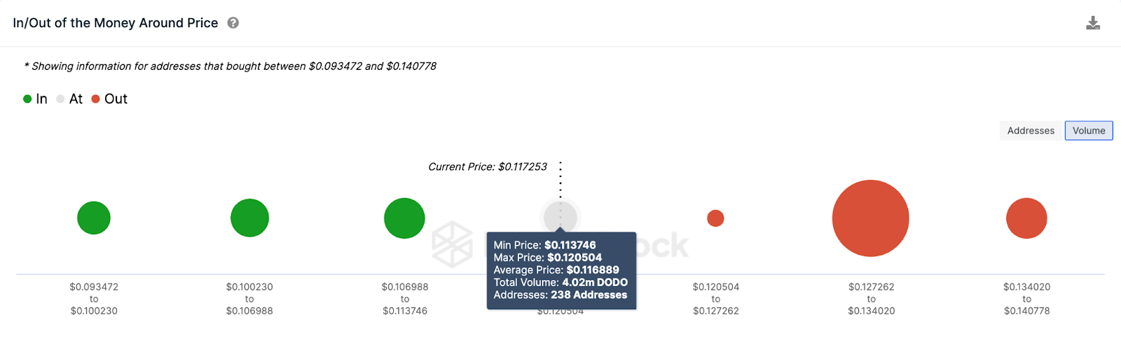 Однако совокупные книги ордеров показывают, что некоторые трейдеры все же планируют зафиксировать прибыль, несмотря на оптимизм в отношении DODO. Согласно данным IntoTheBlock, участники рынка разместили ордера на продажу 11,7 млн и покупку 8,1 млн монет по текущей цене.